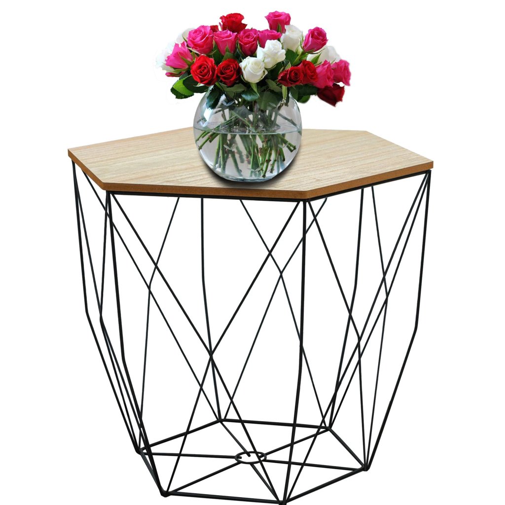 Rea - Sada tří drátěných stolků SG1910-77, černá-hnědá, KRZ-09634