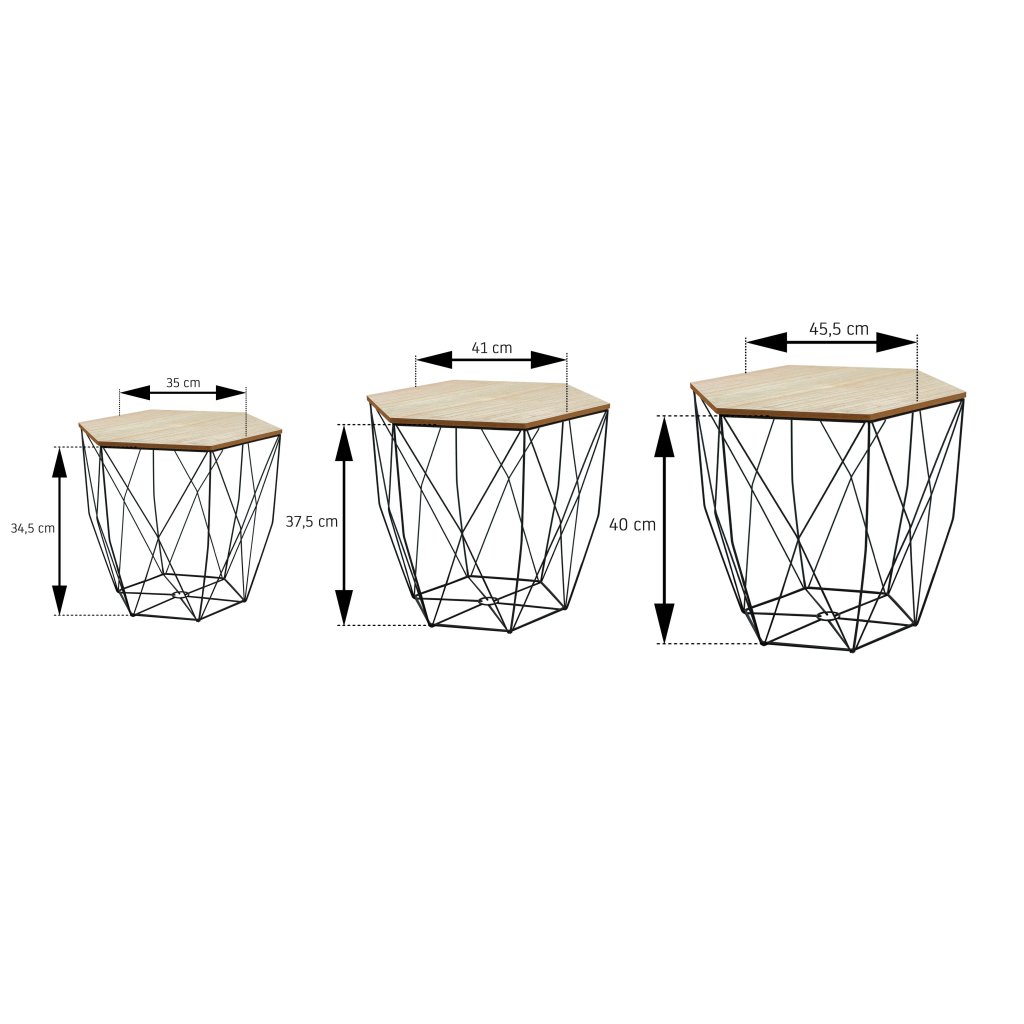 Jeden prvek dokáže zcela změnit interiér. Přesně to je případ našich stolů. Minimalistické a zároveň mimořádně elegantní dokonale vyplní prostor ve vašich pokojích. Souprava se skládá ze 3 kusů - malého, středního a většího stolku.