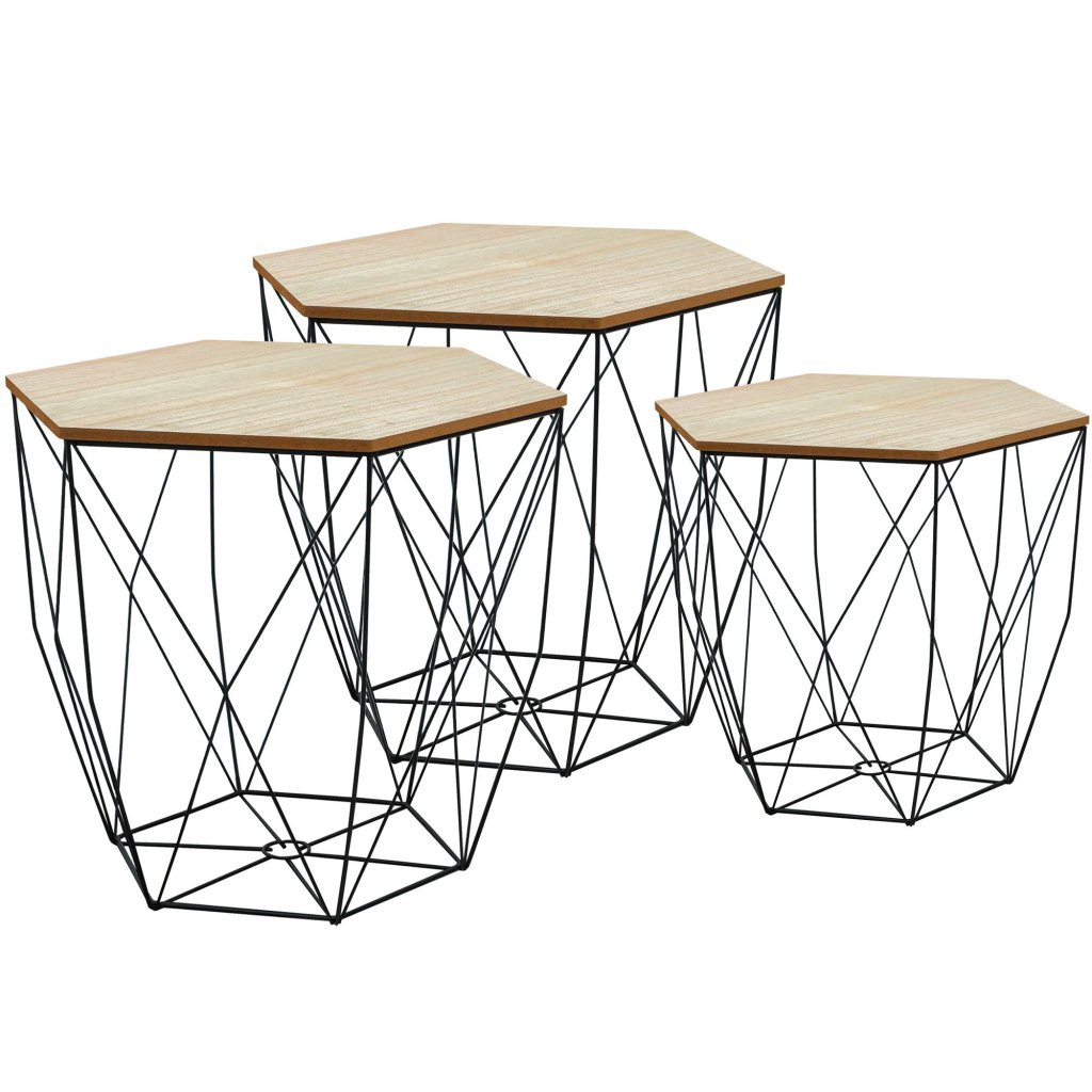 Sada 3 drátěných stolků