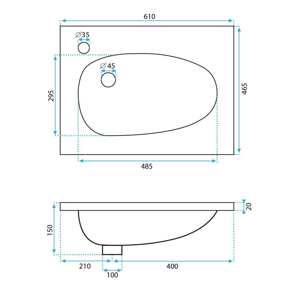 Rea Selena, konglomerátové zápustné umyvadlo 610x465 mm, bílá, REA-U6020