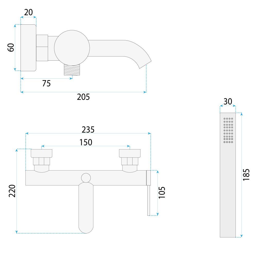 Rea Spot, vanová baterie s ruční sprchovou soupravou, zlatá lesklá, REA-B2081