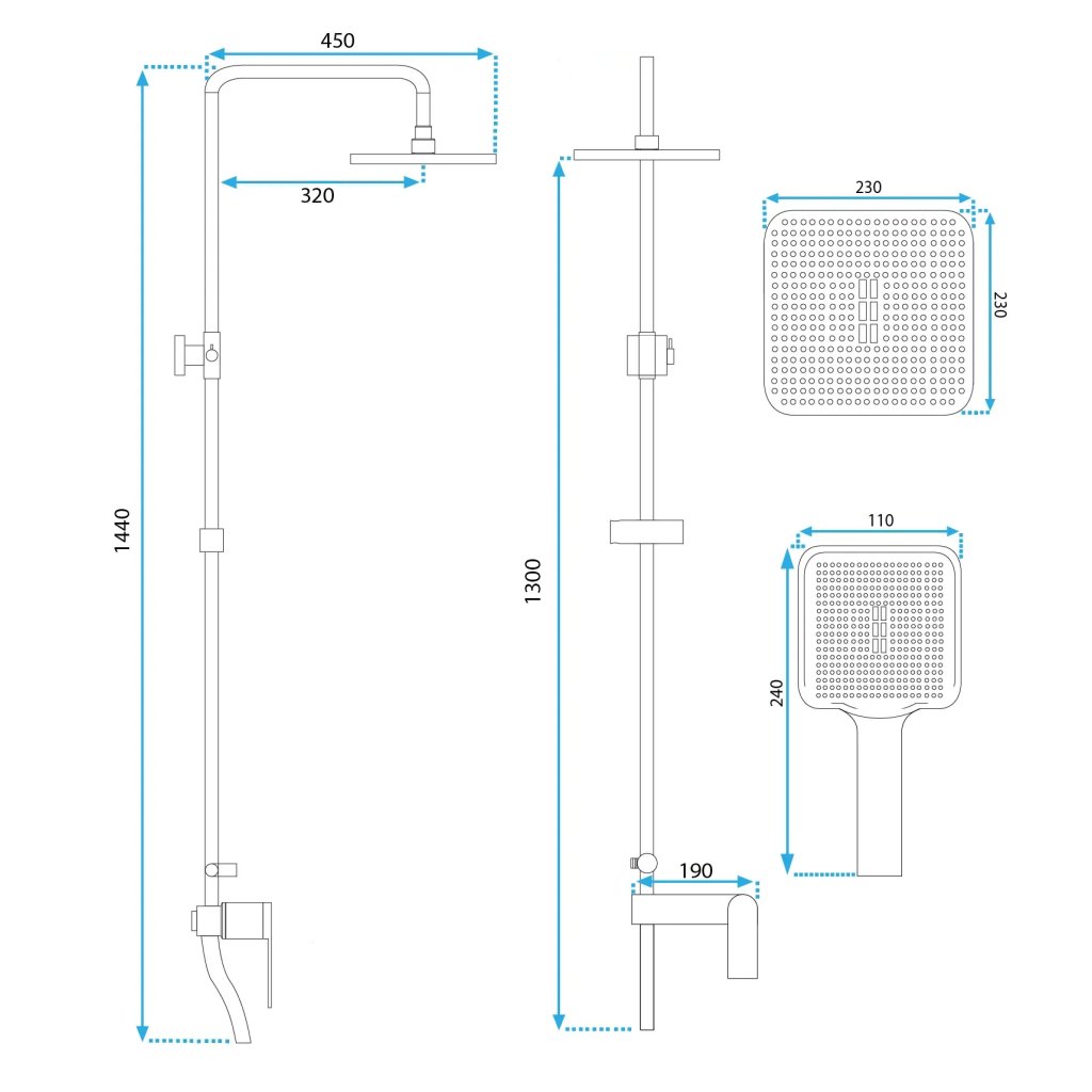 - Nastavitelná výška sprchového sloupu: max. 1400 mm