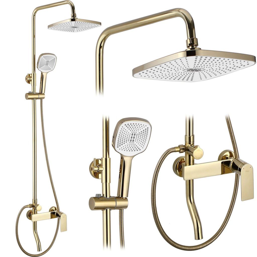 Rea Storm, sprchová-vanová souprava dešťovou hlavovou a ruční sprchovou hlavicí, zlatá lesklá, REA-P9530