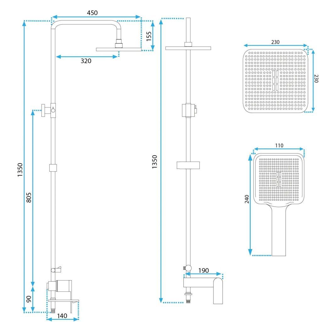 - Rozměry hlavové sprchové hlavice: 23x23cm