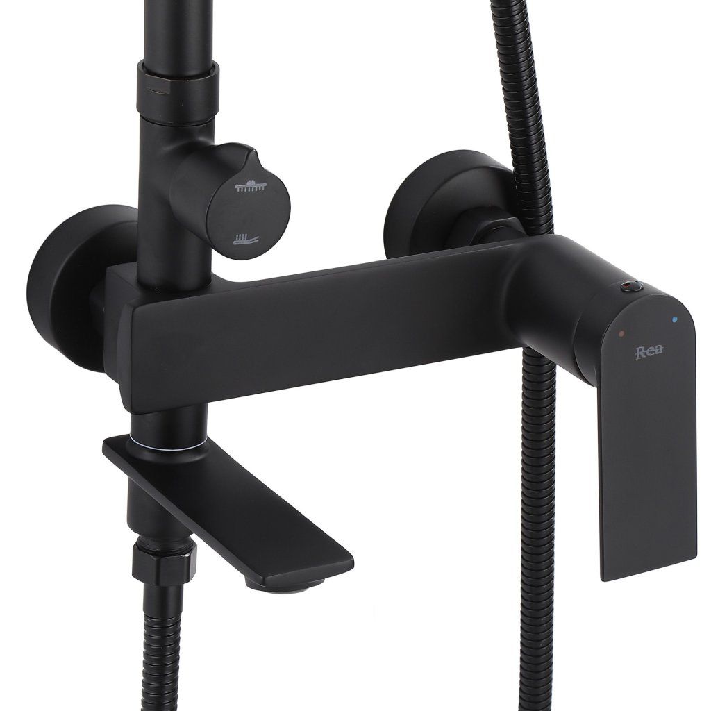 Rea Storm, vanová/sprchová souprava s dešťovou hlavovou sprchou a ruční sprchovou hlavicí, černá matná, REA-P9533