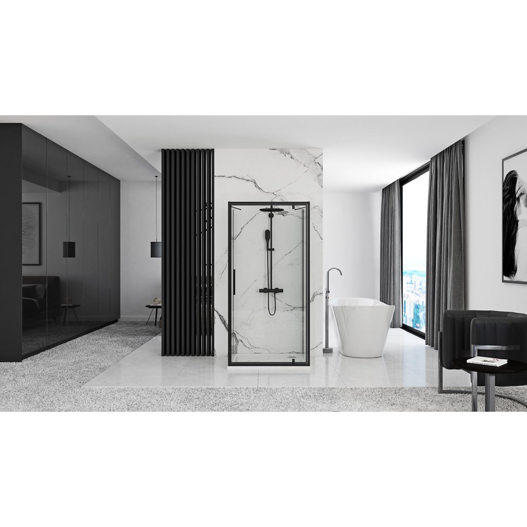 Sprchový kout Rapid Swing od společnosti REA je vynikající volbou pro ty, kteří hledají kombinaci moderního designu s nejvyšší funkčností. Průhledné sklo v kombinaci s profily v elegantní černé matné barvě vytváří výrazný efekt, který se perfektně hodí do loftových, minimalistických a industriálních koupelen. Dveře a stěna kabiny jsou vyrobeny z kvalitního tvrzeného skla o tloušťce 6 mm, které zajišťuje trvanlivost, bezpečnost a odolnost vůči každodennímu používání. Dodatečná povrchová úprava NANO Easy Clean účinně chrání sklo před vodním kamenem a jinými nečistotami, díky čemuž je mimořádně snadné a rychlé udržování čistoty v kabině.