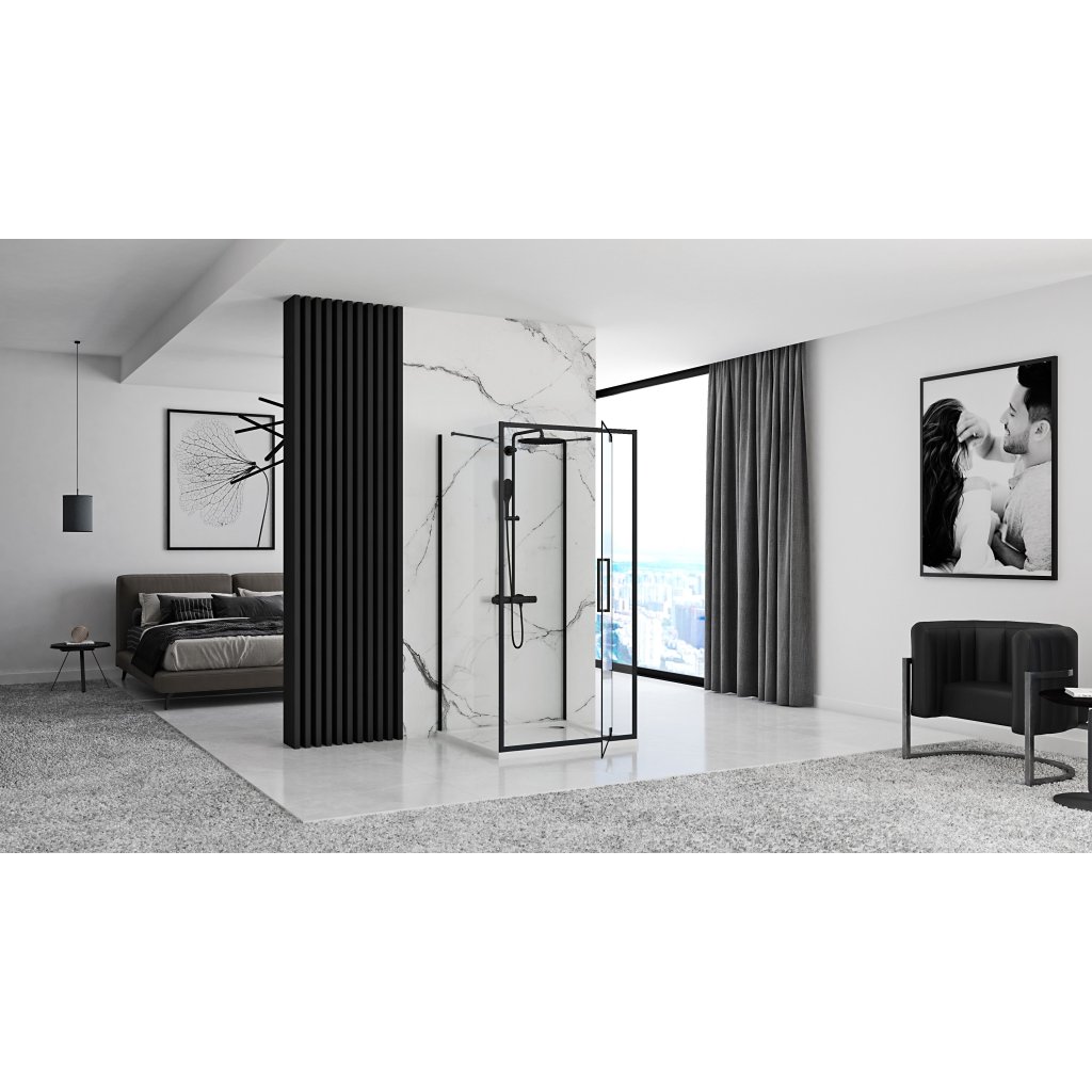 Rea Swing, 3-stěnný sprchový kout 100 (dveře) x 80 (stěna), 6mm čiré sklo, černý profil, KPL-009955
