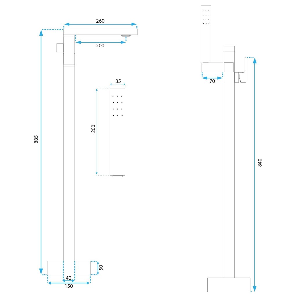 Rea Tery, volně stojící baterie s ruční sprchovou soupravou h-885, chromová, REA-B5305