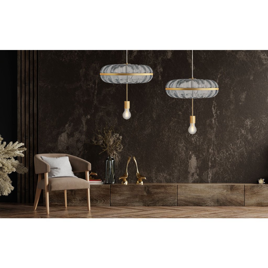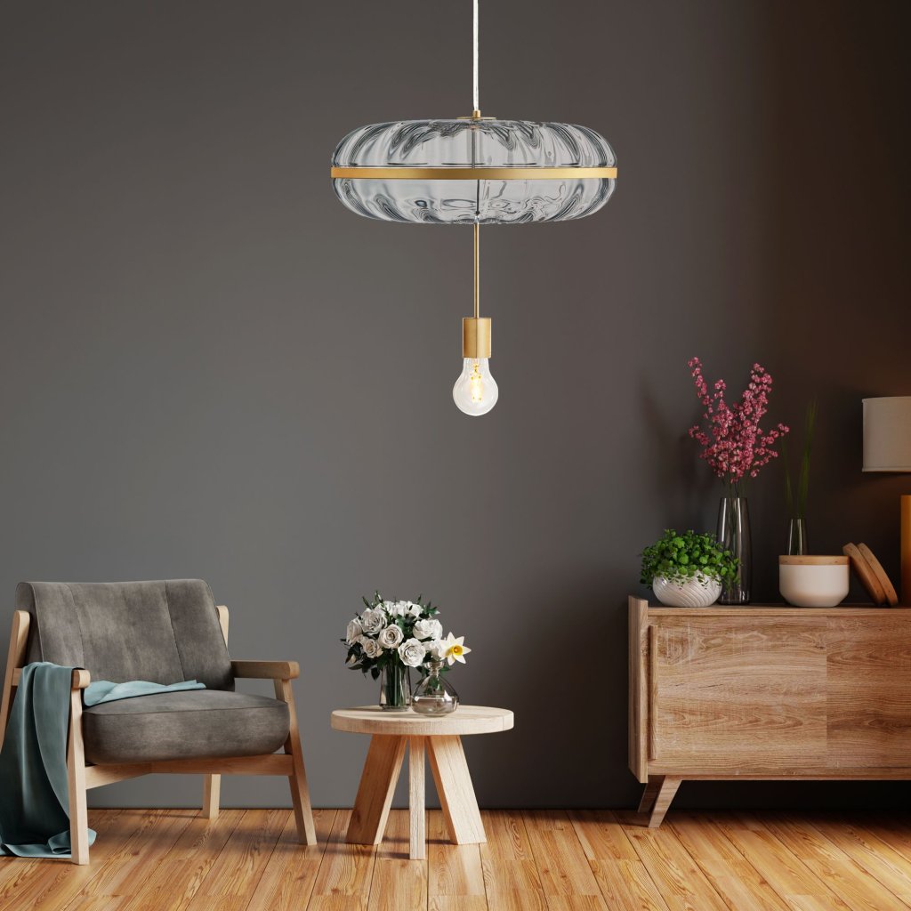 Závěsná lampa je vyrobena ze skla a kovu. Lampa má nejoblíbenější závit určený pro žárovky E27.