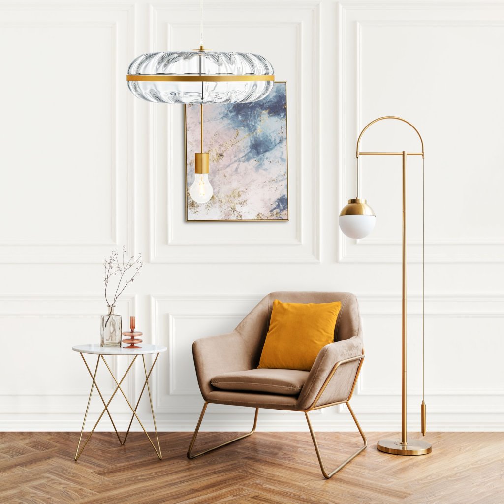 Zlatý akcent dodává lampě jedinečnou atmosféru, která se hodí do téměř každého uspořádání.