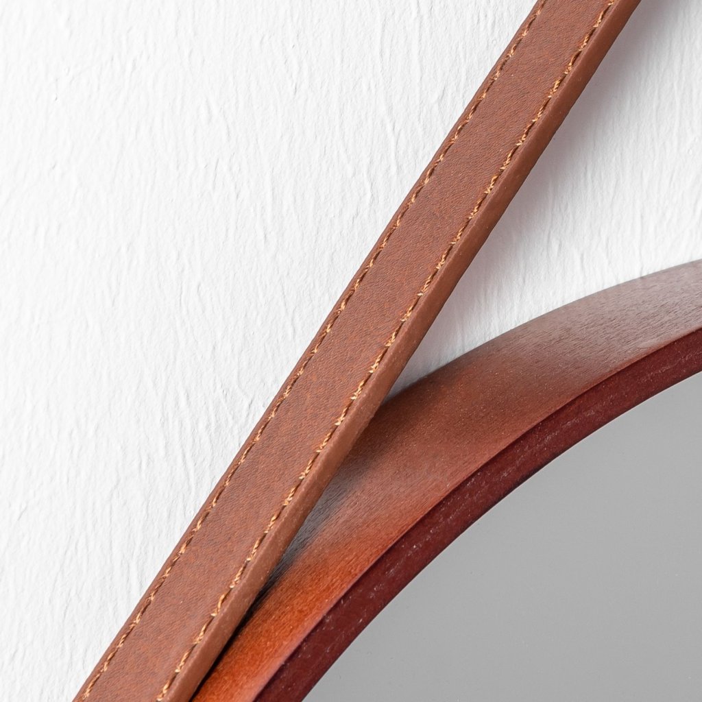 Stylové kulaté zrcadlo Tutumi home s řemínkem Loft je skvělou dekorací do každého interiéru ve vintage, klasickém nebo skandinávském stylu. Elegantní pásek, který slouží jako zrcadlová rukojeť, mu dodává jedinečný styl. Optimální rozměry zrcadla budou v praxi fungovat – nejen jako ozdoba. Průměr 50 cm skvěle doplní každou stěnu.