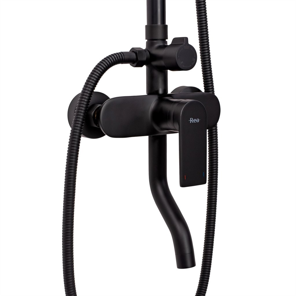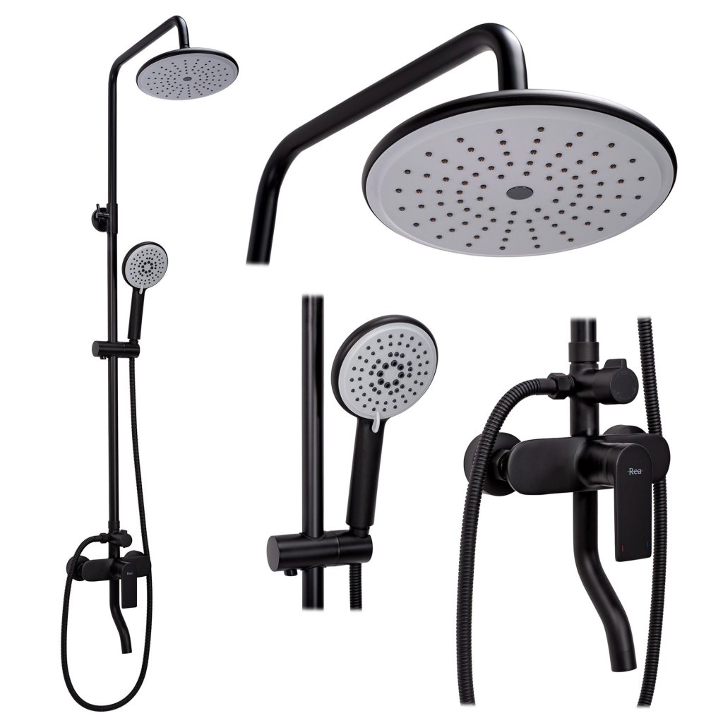 Rea Verso, sprchová souprava s pákovou baterií a dešťovou a ruční sprchovou hlavicí, černá matná, REA-P9145