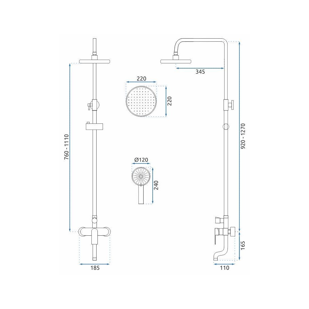 - Složení soupravy: páková baterie, sprchový sloup, sprchová hadice s ruční sprchou