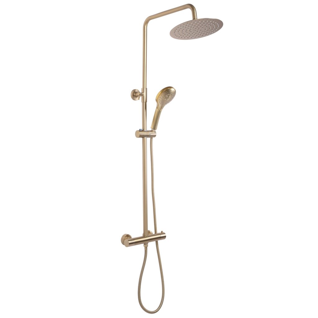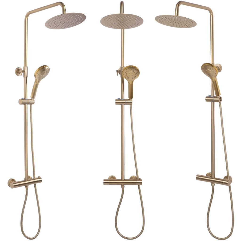 Rea Vincent, sprchový set s termostatickou baterií a dešťovou hlavicí 25cm, zlatá matná, REA-P6602