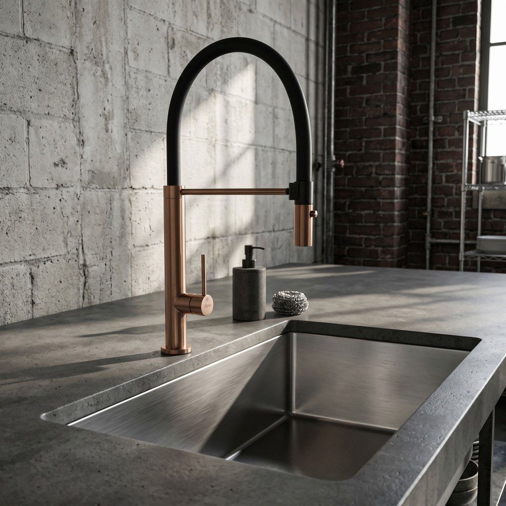 Kuchyňská baterie REA Víra v provedení Měděná matná (Brush Copper) přináší do kuchyně teplé, luxusní barvy a profesionální styl. Industriální konstrukce s flexibilním ramenem v kombinaci s měděným povrchem vytváří efektní dekorativní prvek pro moderní interiéry.