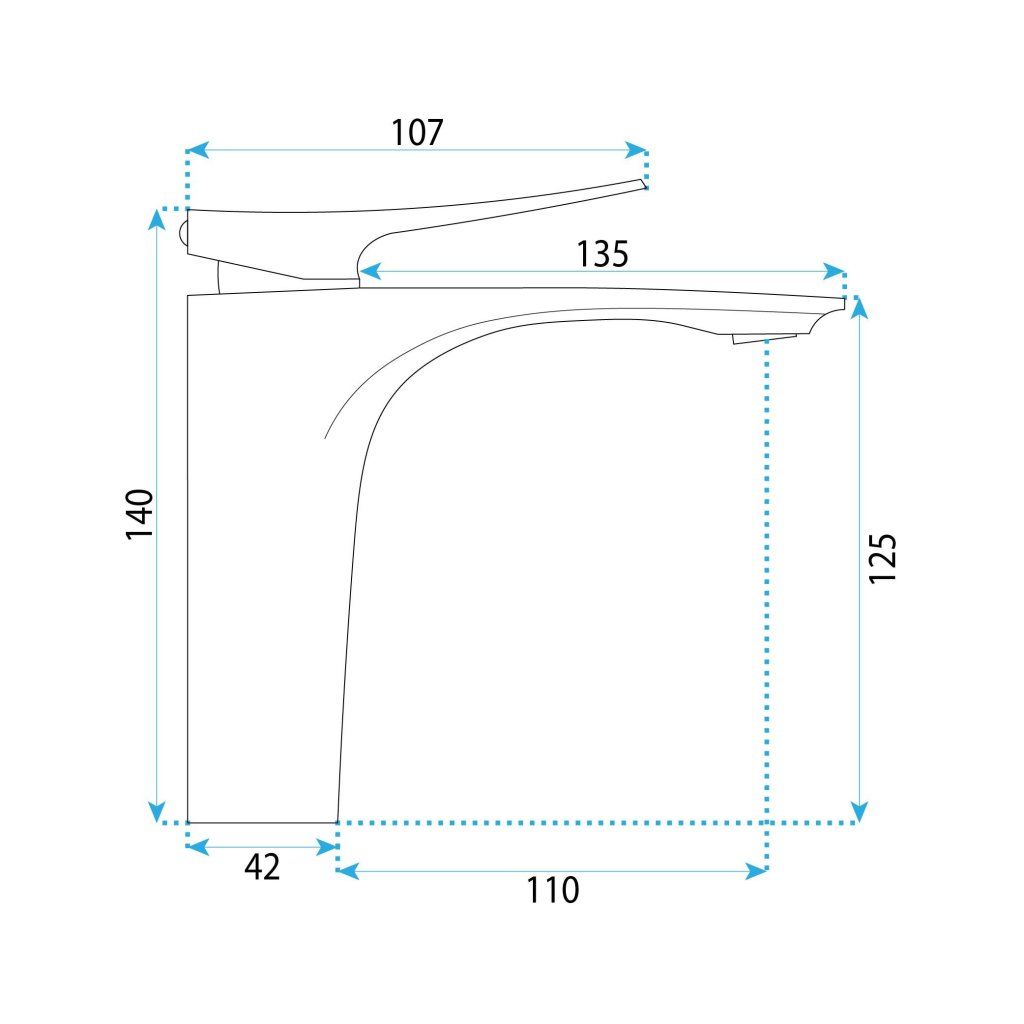 Dosah výlevky 110 mm zaručuje pohodlné použití u běžných umyvadel – voda dopadá do středu dřezu bez rozstřikování po okrajích a bez potřeby hlubokého umyvadla.