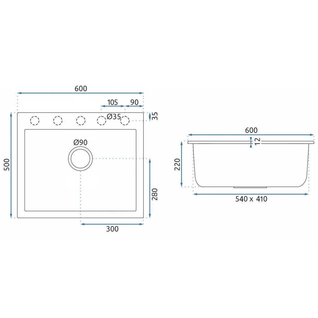 Rea West XL, 1-komorový kuchyňský dřez 600x500x220 mm, černá skvrnitá, ZLE-00116