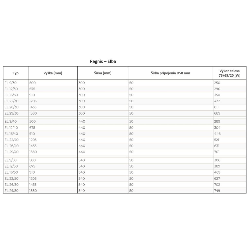 Regnis Elba, topné těleso 440x1205mm, 521W, spodní středové připojení D50, černá, ELBA120/40/D5/BLACK