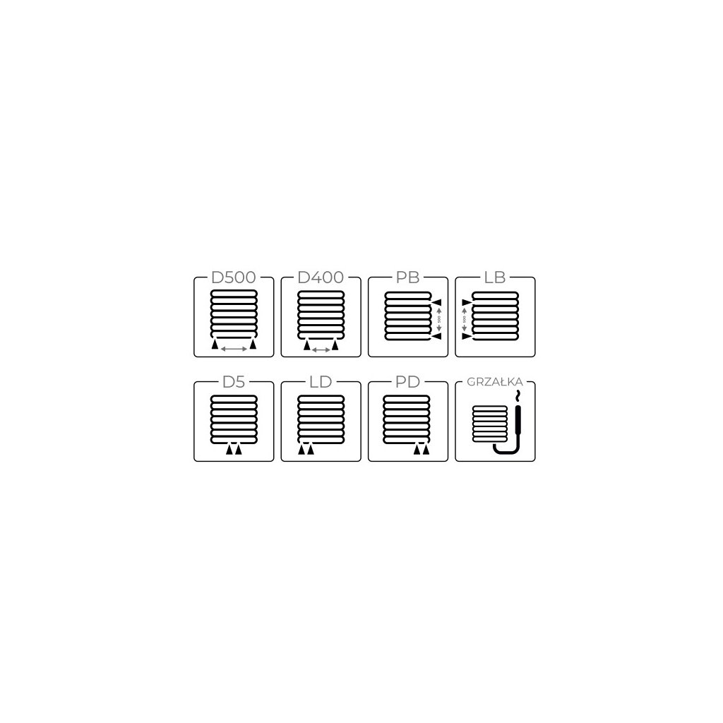 - Rozteče připojení: NA OBJEDNÁVKU (nutno uvést v poznámce objednávky - viz možnosti vyhotovení v příloze). V případě neuvedení žádosti o alternativní připojení, bude radiátor vyhotoven jako na obrázku (LD - dolní levé připojení, rozteč 50mm)