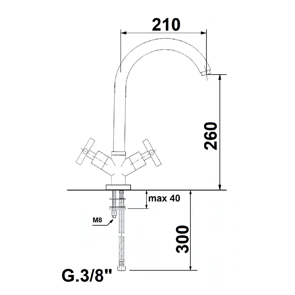 Reitano Rubinetteria, AXIA stojánková dřezová baterie, chrom, 509