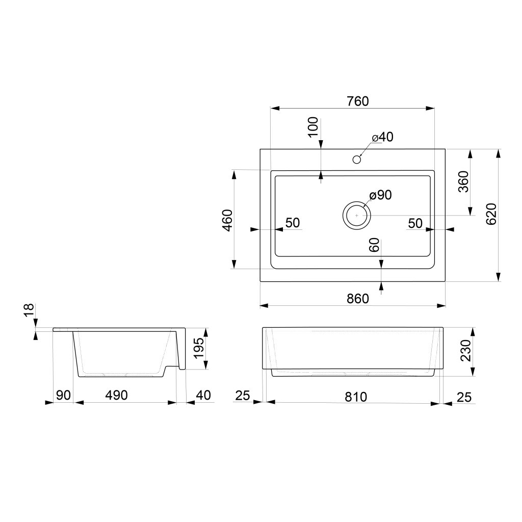 Sapho, ARYA keramický dřez s otvorem pro baterii 86x62cm, bílá, 50186