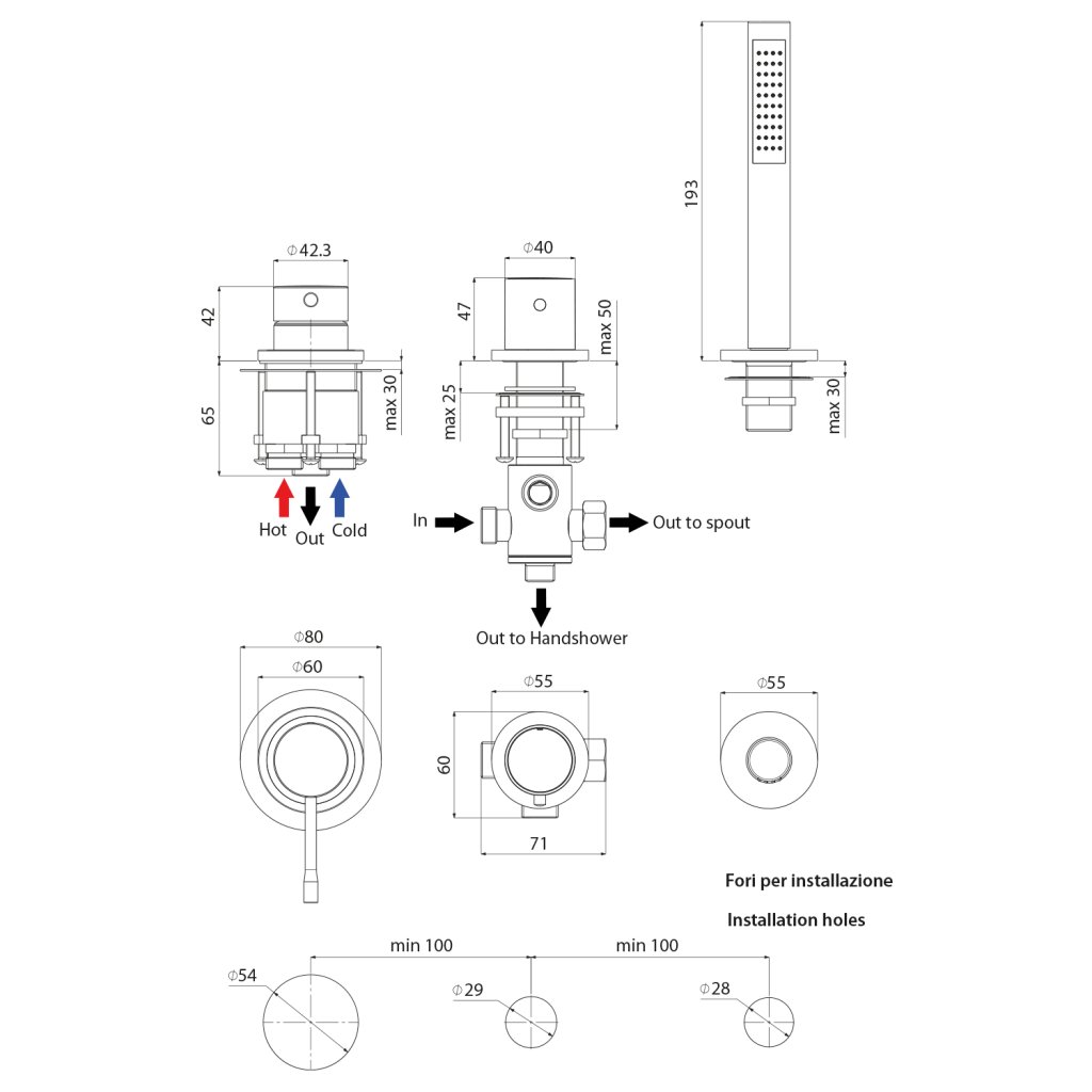 Sapho, BLUE tříprvková baterie na okraj vany, chrom, BUTECH3