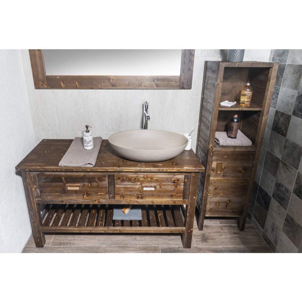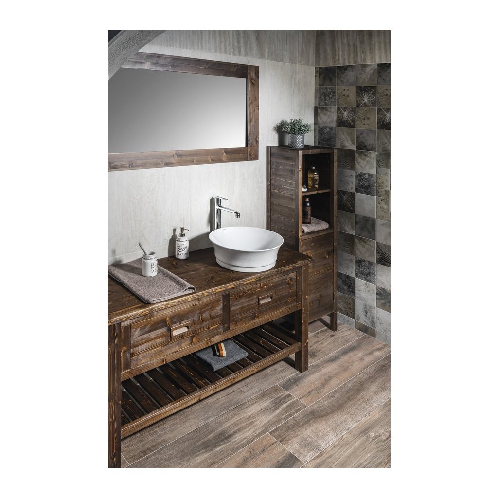 Bývalo pravidlem, že jednoduchý a vzdušný styl koupelny byl zastoupen pouze moderním nábytkem, pro který byly použity materiály typu ocel, sklo a umělý kámen a který striktně dodržoval minimalistický technostyl. Naše série BRAND tento mýtus boří. Díky propracovanému návrhu tvarů a použitých materiálů nabízí jednoduchý a vzdušný tvar. Použití masivního dřeva přímo vybízí k návrhu koupelny ve středomořském duchu. Nabídku umyvadlových skříněk s keramickým umyvadlem šířky 60 a 80 cm a umyvadlových stolků šířek 80, 100, 130 a 160 cm pro umyvadla na postavení doplňuje vysoká doplňková skříňka.