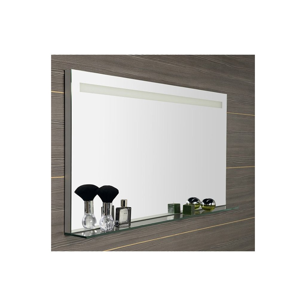 Podsvícená zrcadla osvětlují koupelnu jasným homogením svitem díky modernímu zdroji LED. Jejich dlouhá životnost a nízká spotřeba jsou hlavními výhodami oproti klasické zářivce. Světlo vyzařované skrz vypískované části dodá koupelně jemné osvětlení, zvláště příjemné při ranní hygieně. Zároveň jistě oceníte i praktickou polici, která je součástí zrcadla.