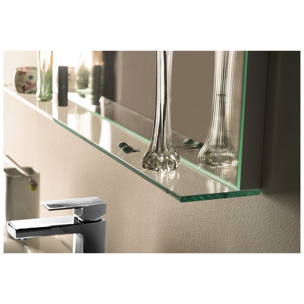 Podsvícená zrcadla osvětlují koupelnu jasným homogením svitem díky modernímu zdroji LED. Jejich dlouhá životnost a nízká spotřeba jsou hlavními výhodami oproti klasické zářivce. Světlo vyzařované skrz vypískované části dodá koupelně jemné osvětlení, zvláště příjemné při ranní hygieně. Zároveň jistě oceníte i praktickou polici, která je součástí zrcadla.