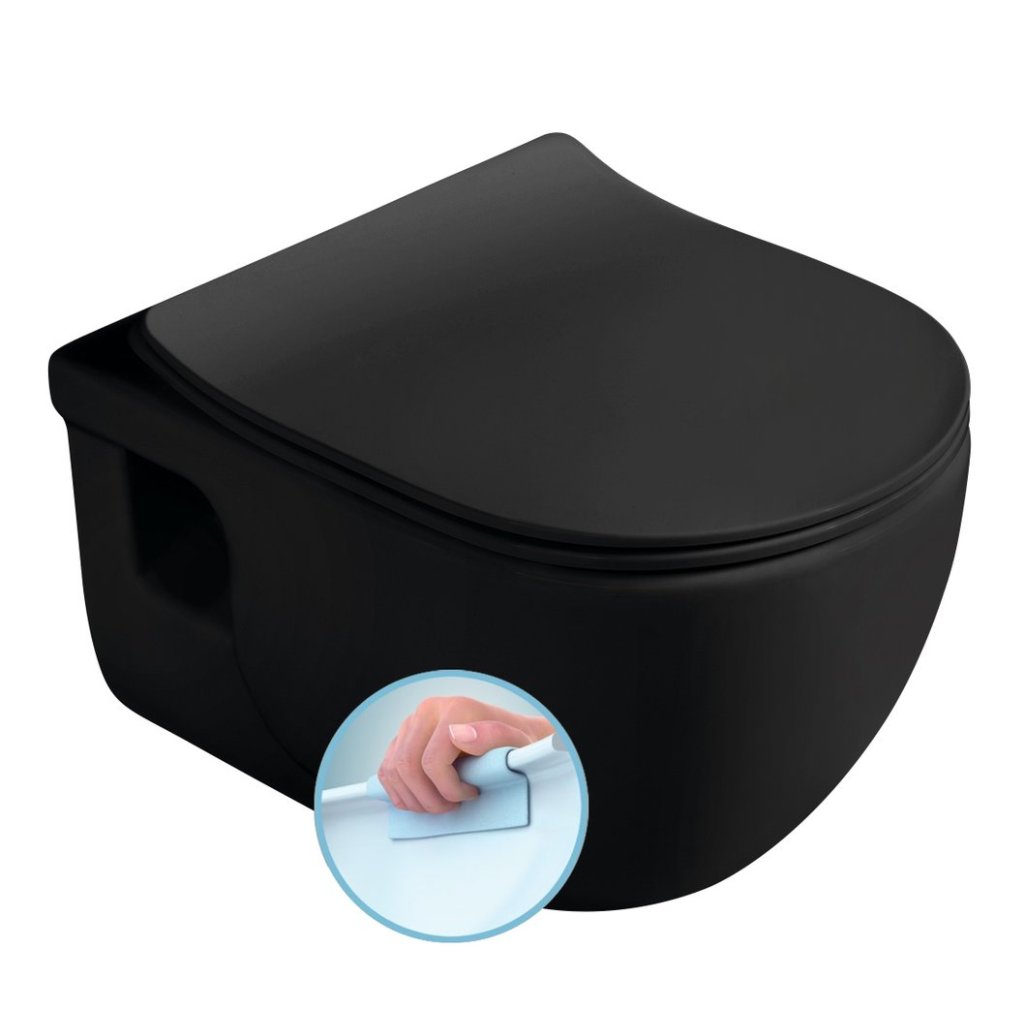 Sapho, BRILLA závěsná WC mísa, Rimless, 36,5x53cm, černá matná, 100614-110