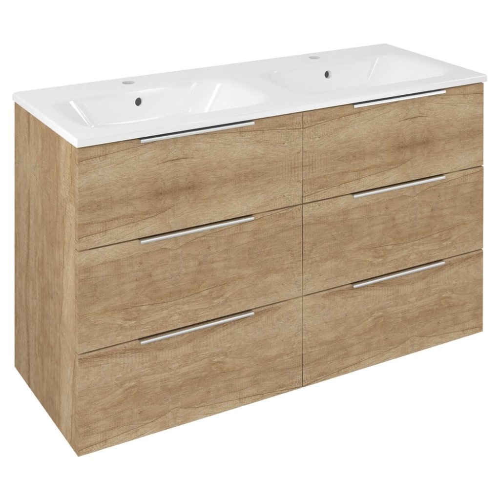 Sapho, CIRASA umyvadlová skříňka s dvojitým umyvadlem 121x77x46cm, 3x zásuvka, dub alabama, CR121-2222-31