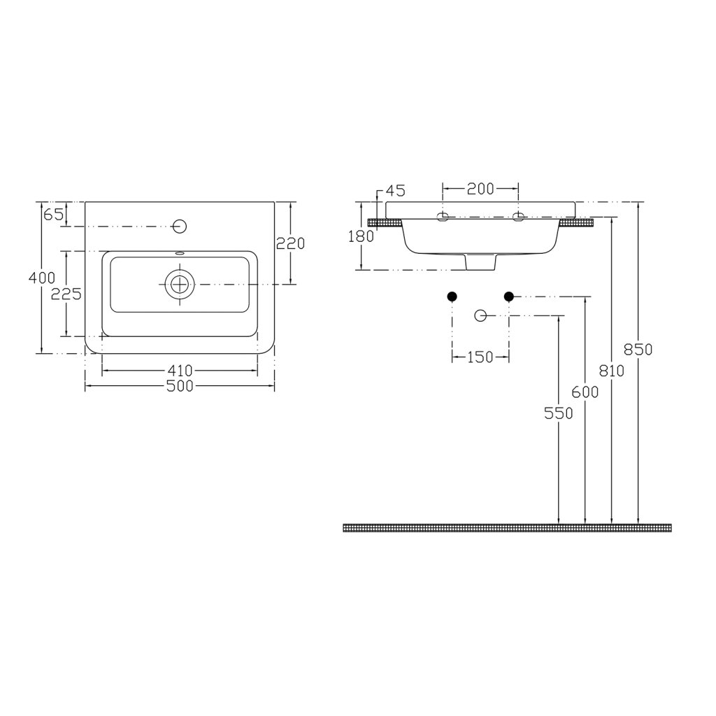 Sapho, CITY keramické umyvadlo hranaté 50x18x40cm, KE050