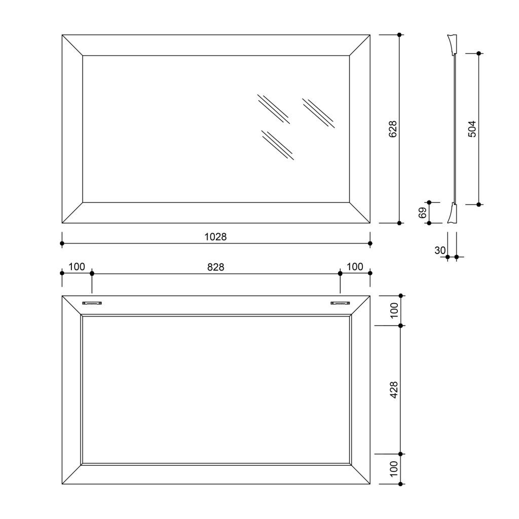 Možné vyrobit v atypickém rozměru: max. rozměr rámu 828x1228 mm (zrcadlo 700x1100 mm, doba dodání do 30 dnů, cena na dotaz)