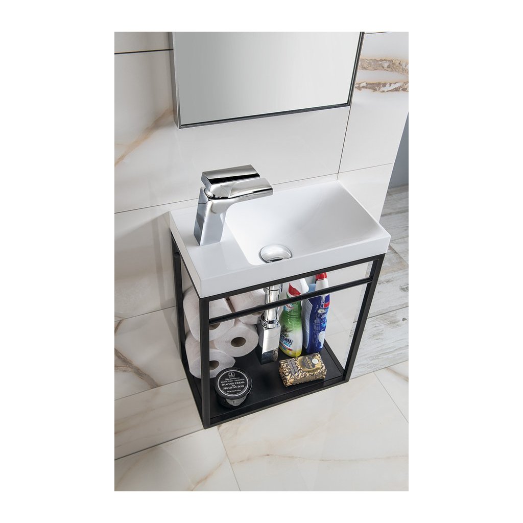 Sapho, AMAROK litý mramor umyvadlo 40x22cm, černá matná, baterie vpravo, AR500B