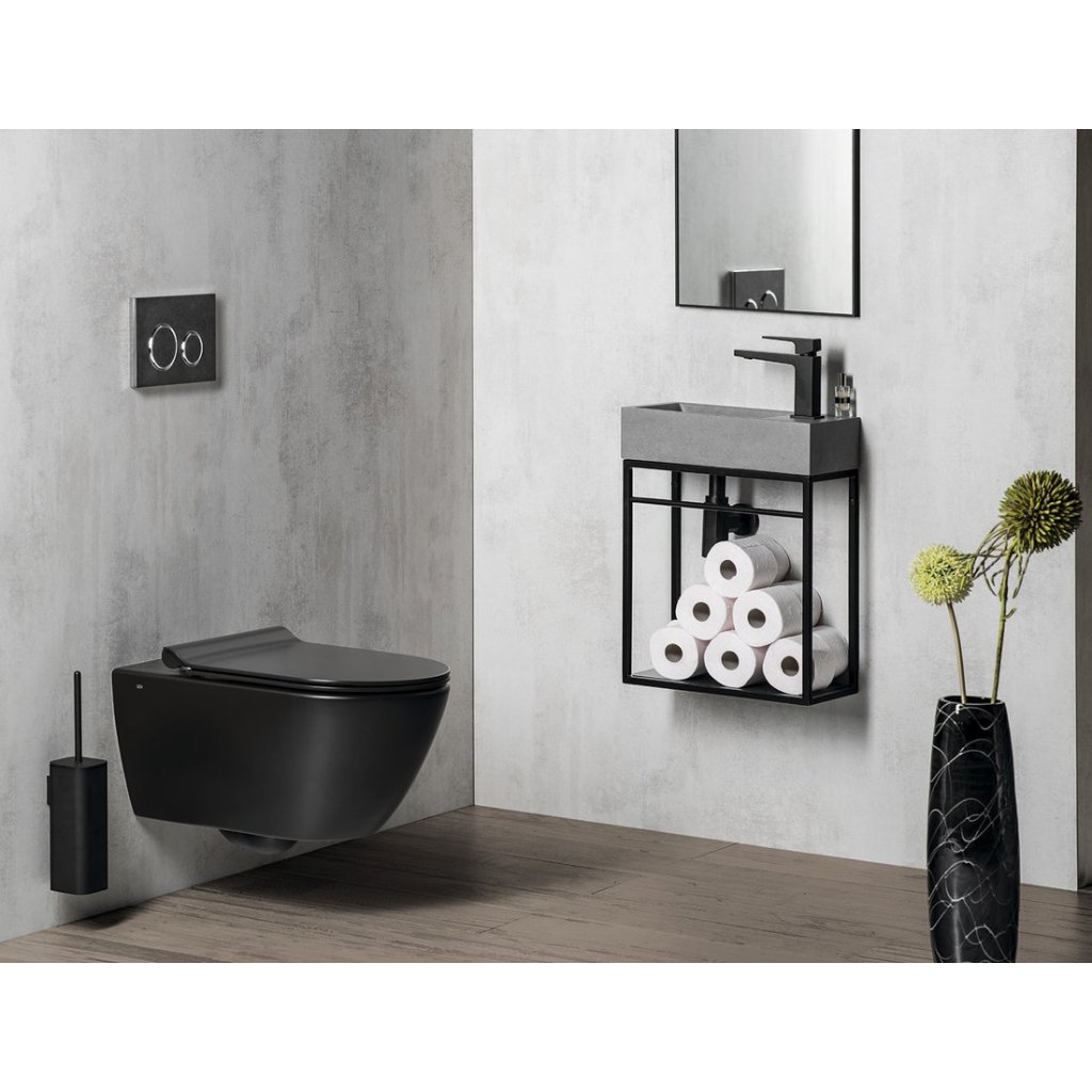 Sapho, CREST R betonové umyvadlo včetně výpusti, 40x22 cm, černý granit, AR409