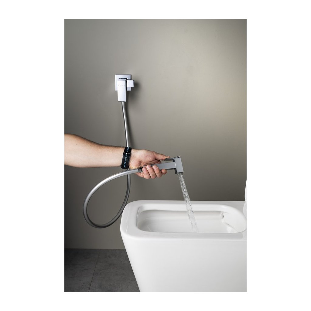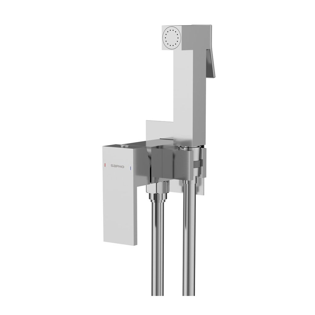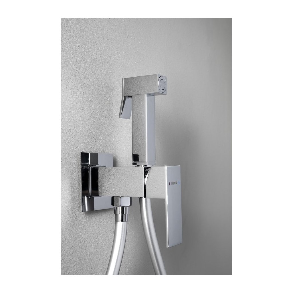 Sapho, CUBEMIX podomítková bidetová baterie se Stop sprškou, hranatá, chrom, CM040