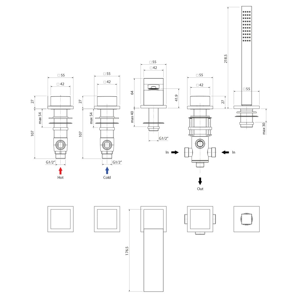 Sapho, DIMY pětiprvková baterie na okraj vany, chrom, DIMTECH5