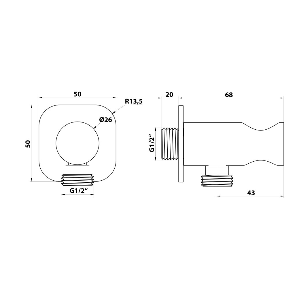 Sapho, Držák sprchy, pevný, s vyústěním, chrom, SG403