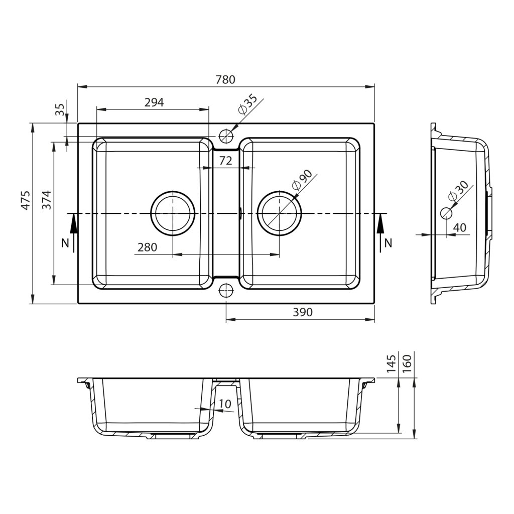 Sapho, Dvoudřez granitový, 78x47,5 cm, bílá, GR2221