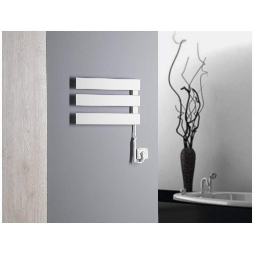 Elektrické otopné těleso je určeno k nahřívání a sušení ručníků, které oceníte především v zimním období. Těleso je vyrobeno z nerezové oceli, která zajišťuje jeho dlouhou životnost. Praktický tvar tělesa do písmene E pro pohodlné odkládání osušek a kompaktní rozměry oceníte zejména v menších koupelnách. Ohřev zajišťuje odporový topný kabel vyrobený z uhlíkového vlákna (bez použití kapalné plnící směsi), což zajišťuje skvělou tepelnou vodivost. Těleso lze zapojit přímo do elektrické zásuvky díky kabelu zakončenému koncovkou.