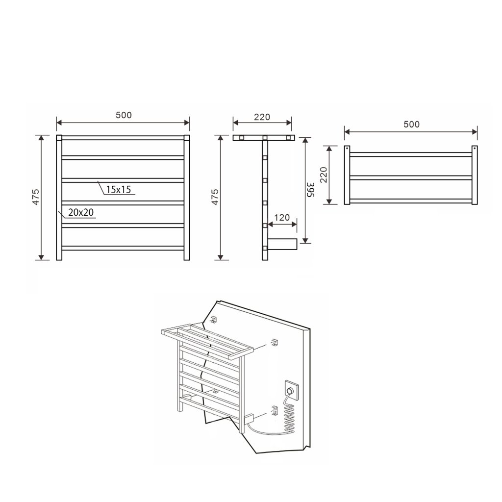 Sapho, ELZOR Elektrický sušák ručníků 500x470mm, 60W, černá matná, EB510