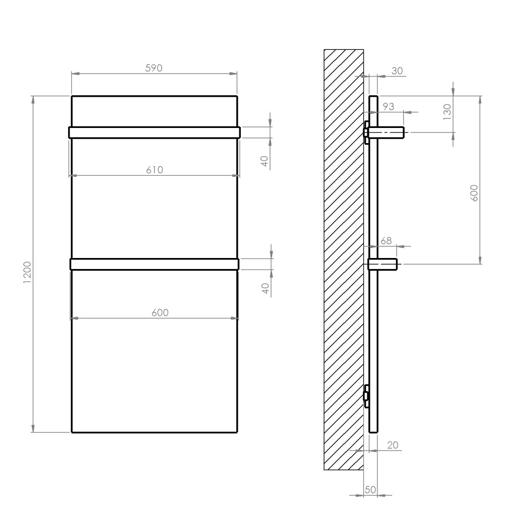Sapho, ENIS koupelnový sálavý topný panel 600W, IP44, 590x1200 mm, černá mat, RH600B