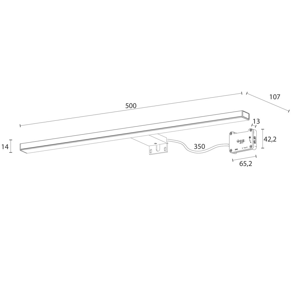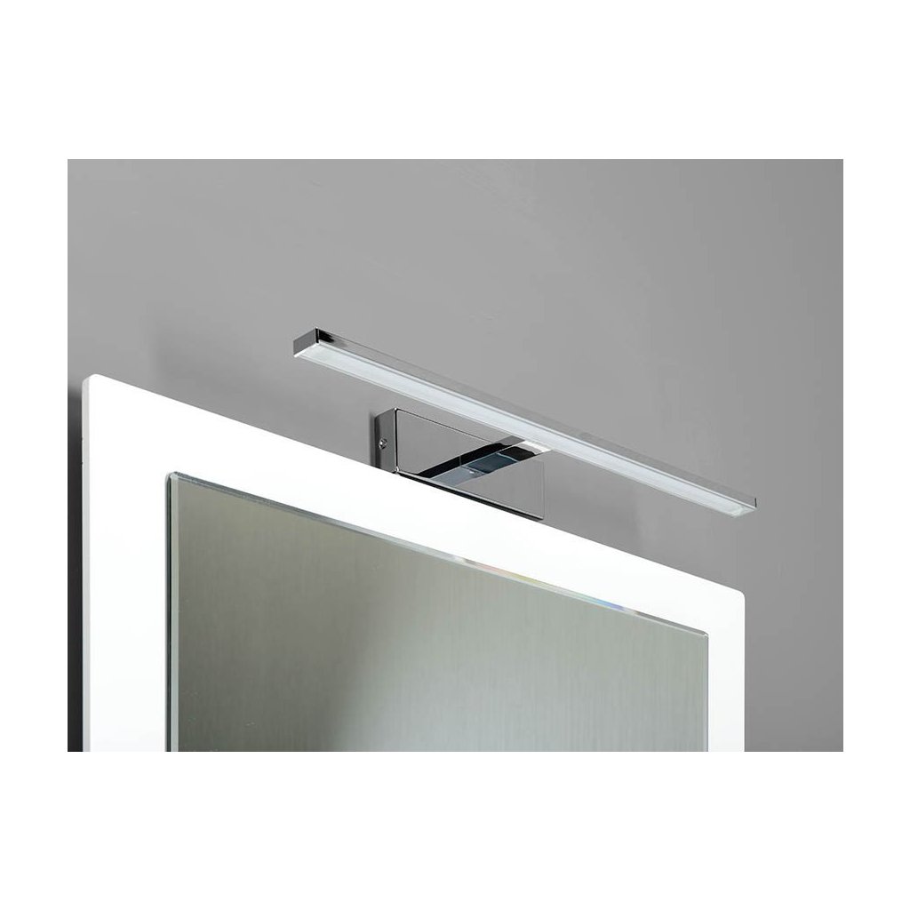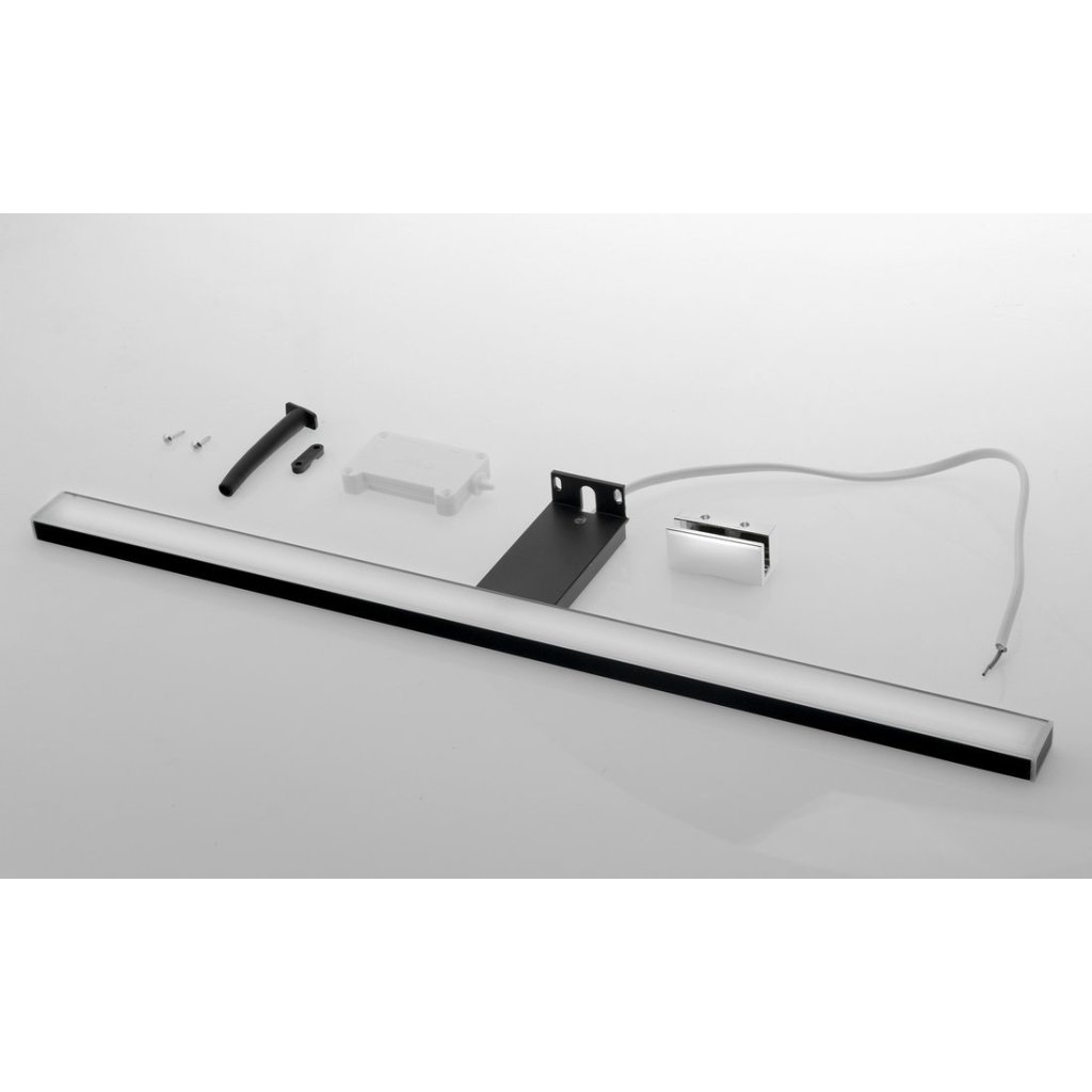 Moderní svítidlo bez LED driveru, připojuje se přímo na 230V pomocí spojovacího boxu s ochranou IP44. Montáž na zeď nebo na rám zrcadla. Součástí balení je univerzální držák v chromu, pomocí kterého lze instalovat svítidlo na galerku nebo přímo na zrcadlo (max. tloušťka zrcadla je 6 mm).