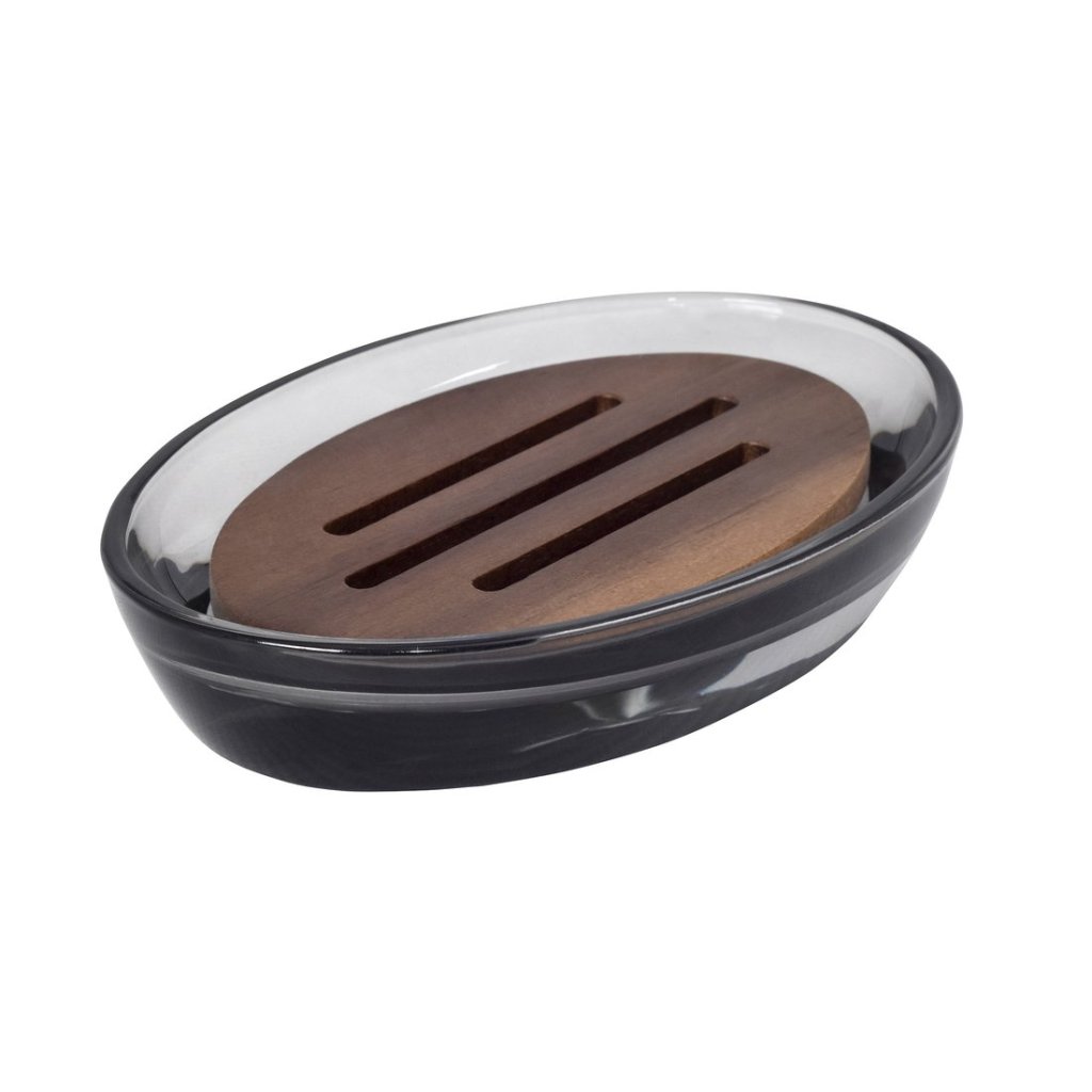 Doplňky z kolekce FIGO se vyznačují kombinací kouřového skla a dřeva, jejichž sladěný design tvoří harmonický celek. Sada obsahuje mýdlenku, sklenku na zubní kartáčky a dávkovač mýdla.