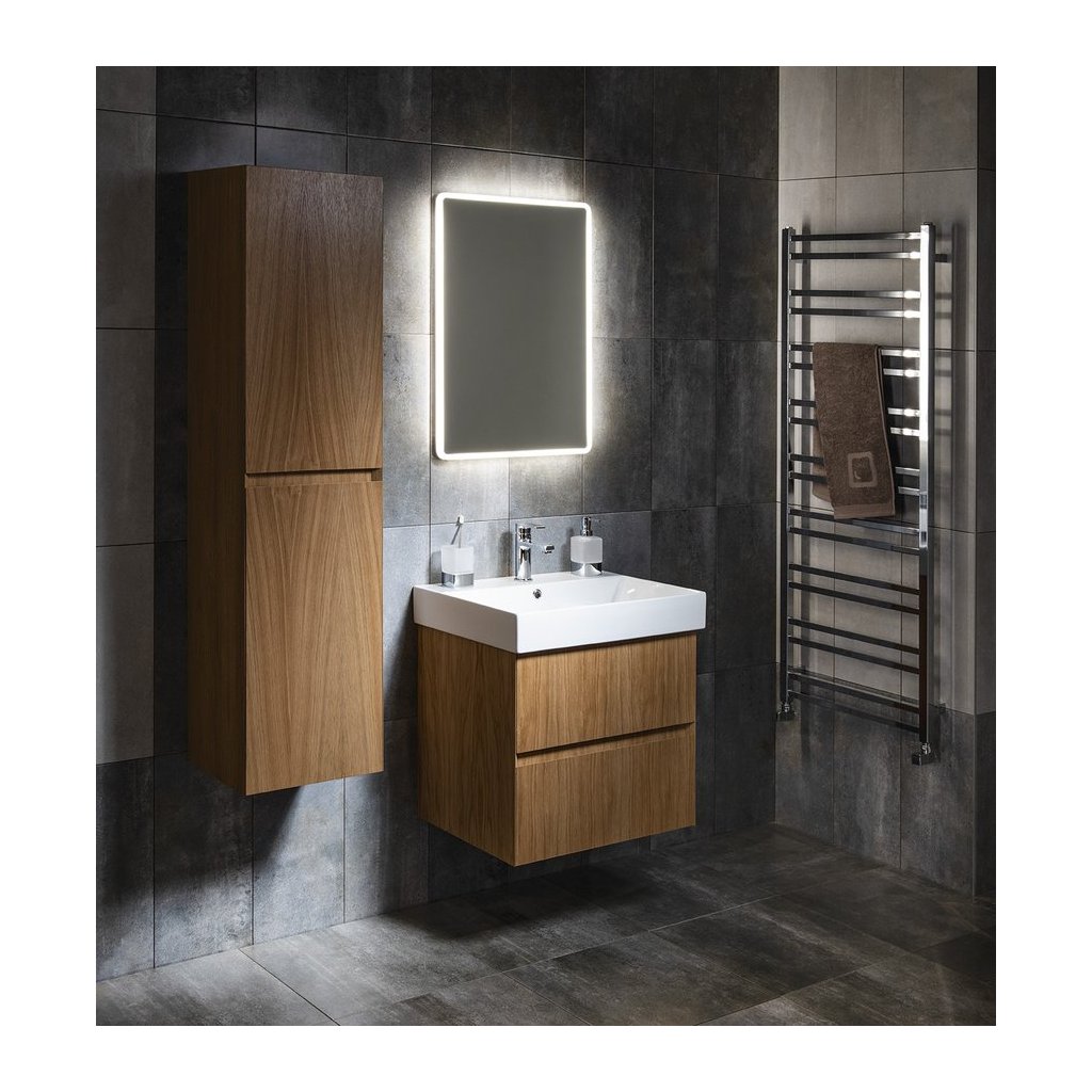 Dokonale decentní série koupelnového nábytku FILENA nabízí skříňky z dubové dýhy v přírodním provedení dekoru dřeva ošetřeném transparentním lakem, v bílém matném lakování a v černě matném lakovaném drážkovaném designu. Ostré zkosené hrany pod úhlem 45° čel zásuvek a dvířek vytváří tenkou linii, která je pro sérii charakteristická. Čistý design není rušen úchytkou, pohodlné otevírání umožňuje zkosená hrana a otvor mezi zásuvkami.