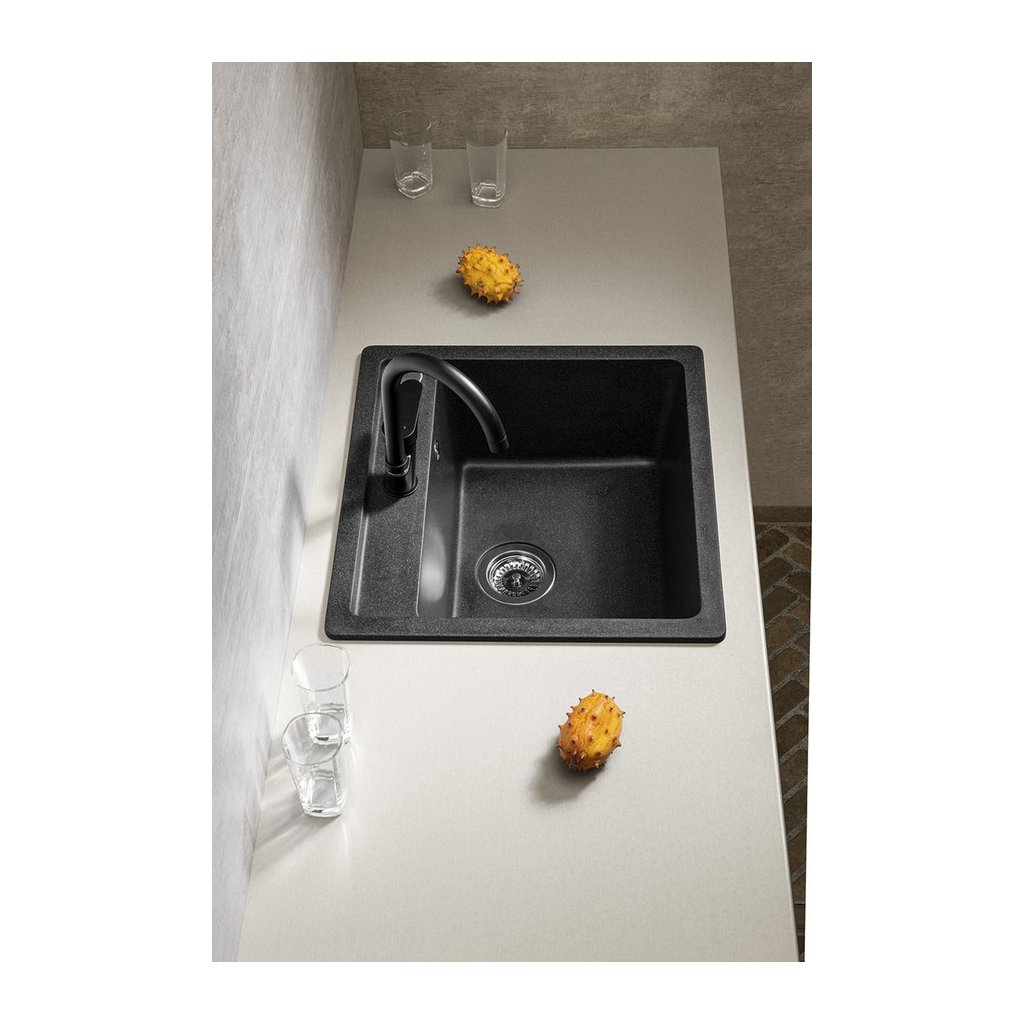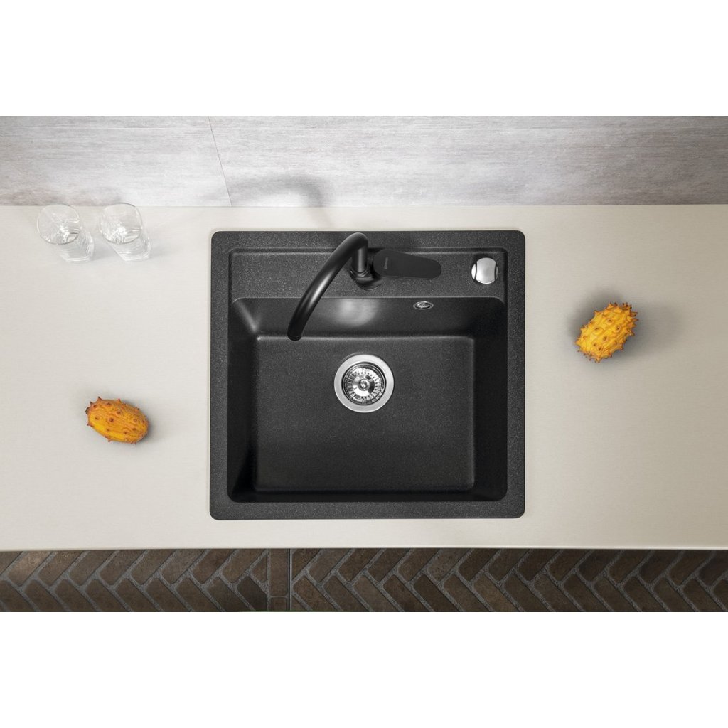 Sapho, Granitový vestavný mono dřez, 53x50cm, černý, GR1034