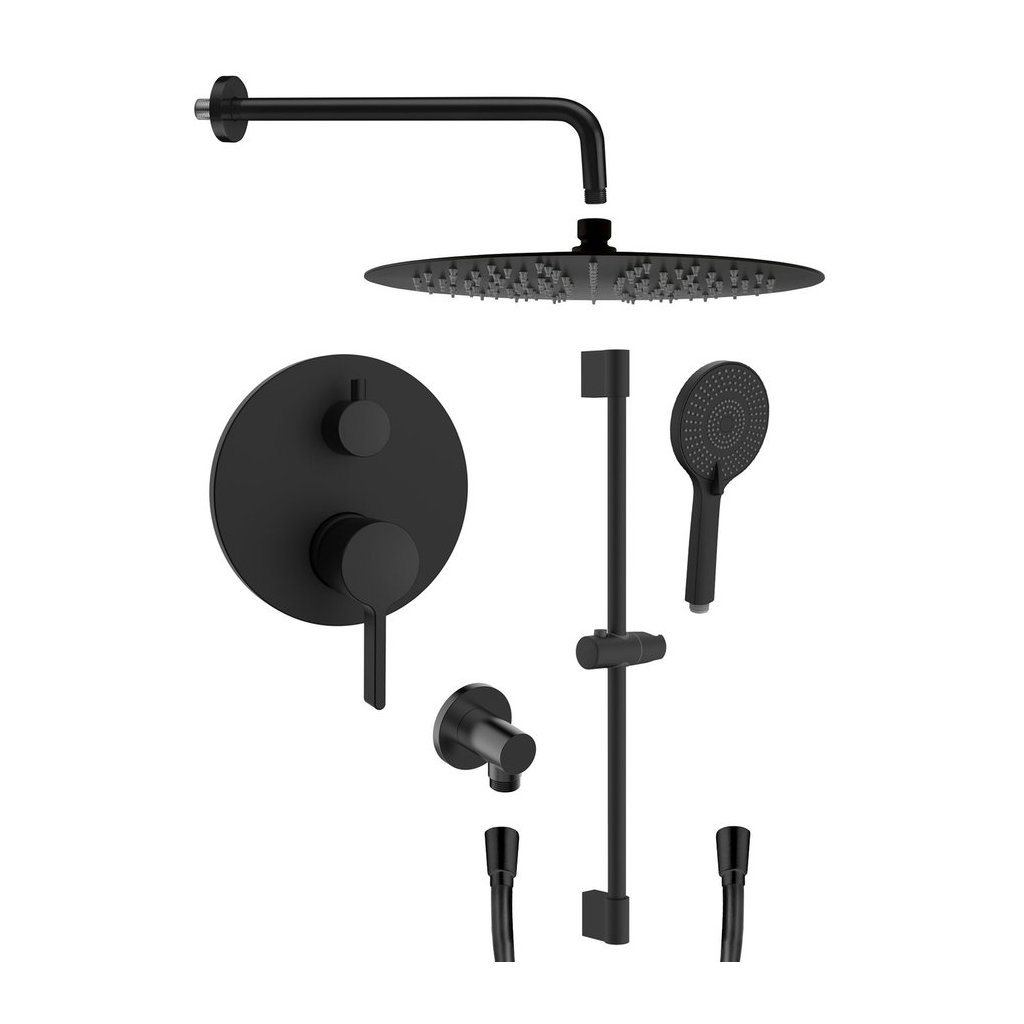 Sapho, ICONIC podomítková sprchová souprava s pákovou baterií, 2 výstupy, černá mat, AF042B-02