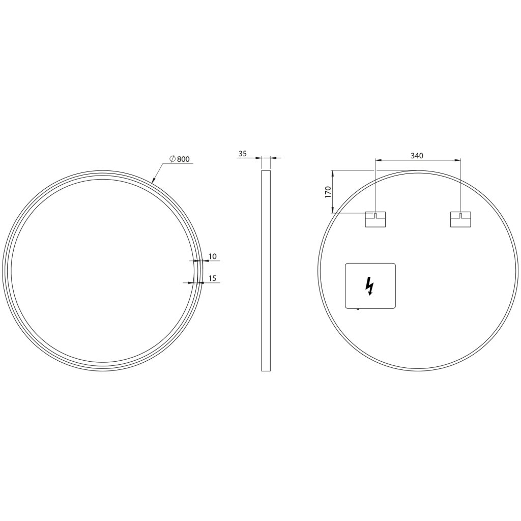 Sapho, KADRIS kulaté zrcadlo s LED osvětlením, ø 80cm, černá mat, KD080