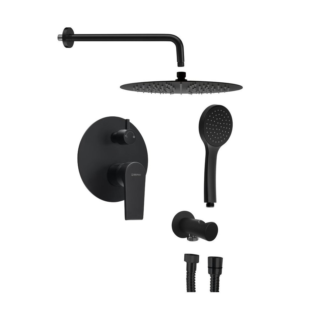 Sapho, KAI podomítkový sprchový set s pákovou baterií, otočný přepínač, 2 výstupy, černá matná, KA43/15-01