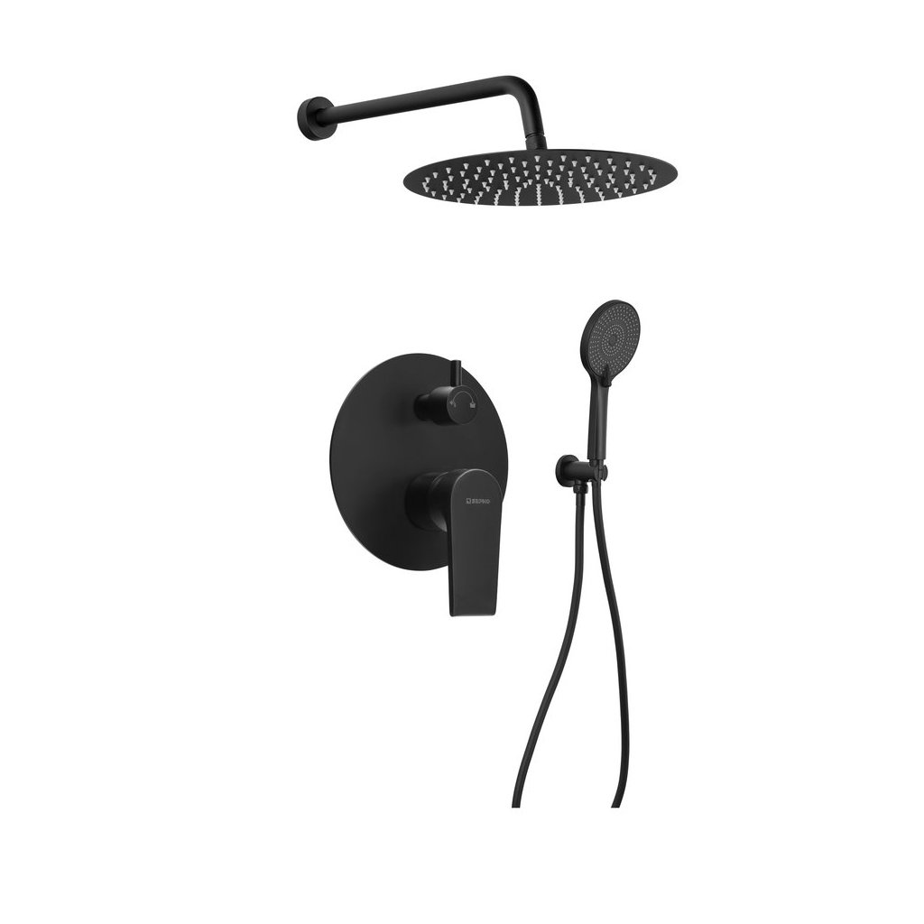Sapho, KAI podomítkový sprchový set s pákovou baterií, otočný přepínač, 2 výstupy, černá matná, KA43/15-03